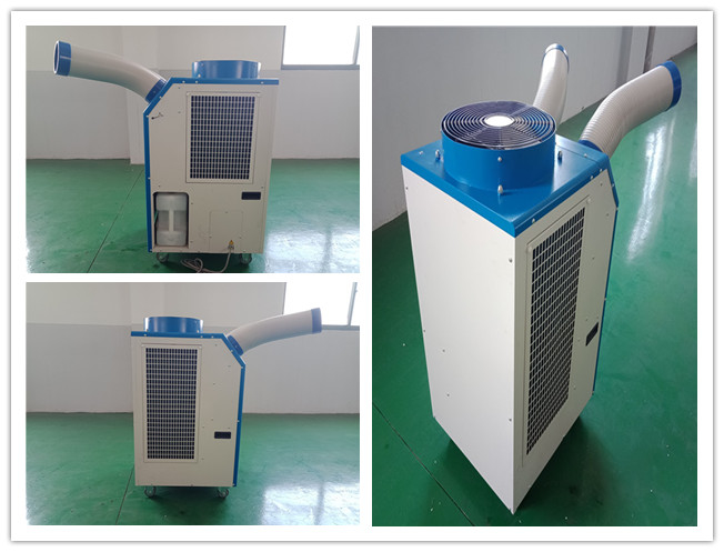 Portable spot iar cooler can be used in a variety of settings and are the favored cooling option in electrical rooms because they do not introduce water lines into the room. Mobile Air has a variety of air cooled portable air conditioners with a wide range of cooling capacities available for rental. The air cooled portable air conditioners can be operated from inside your building with exhaust sent outside. Larger units are operated outdoors and use ductwork to bring the cold are into the desired location.